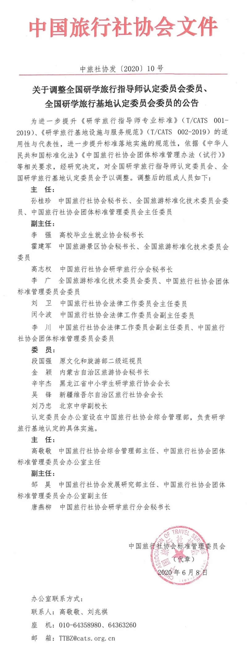 关于调整全国研学旅行指导师认定委员会等的公告