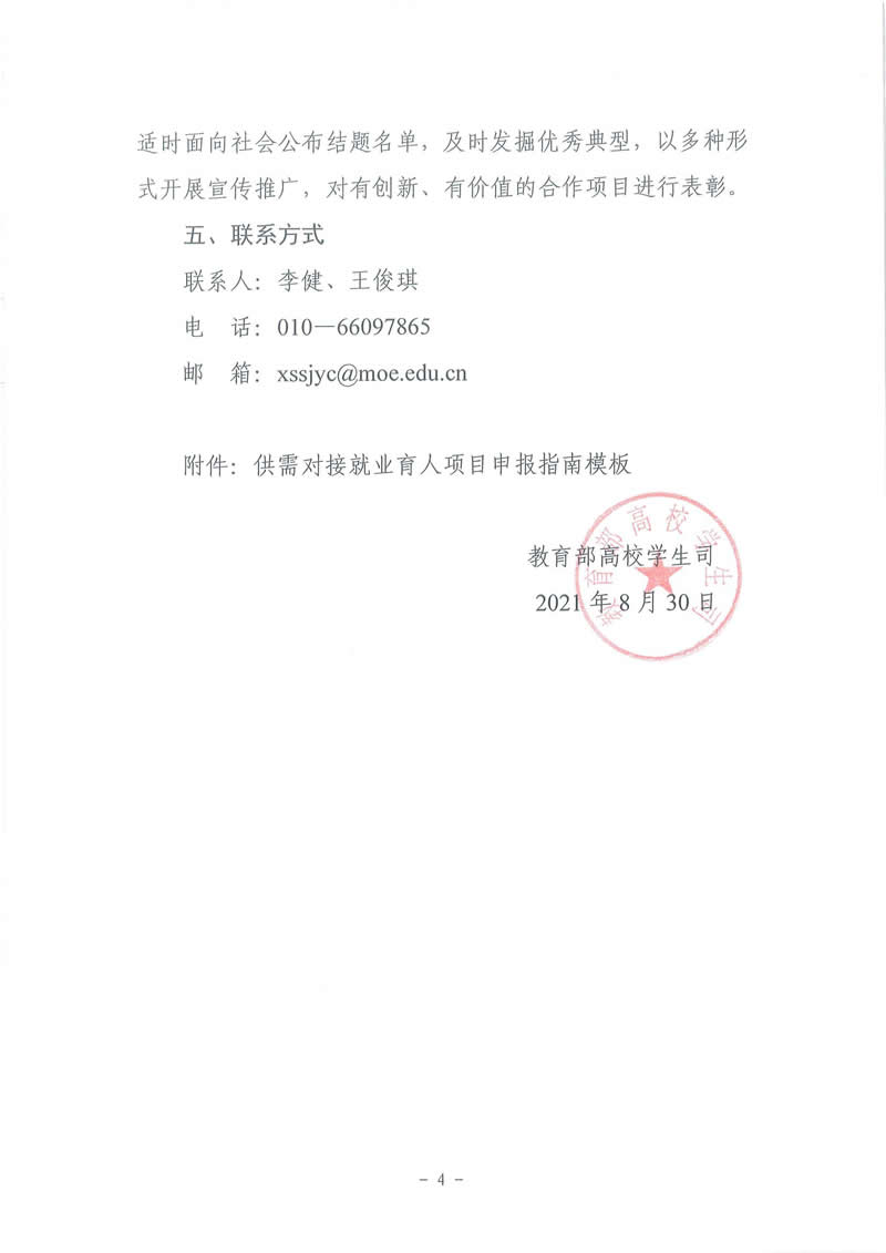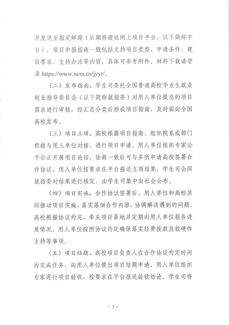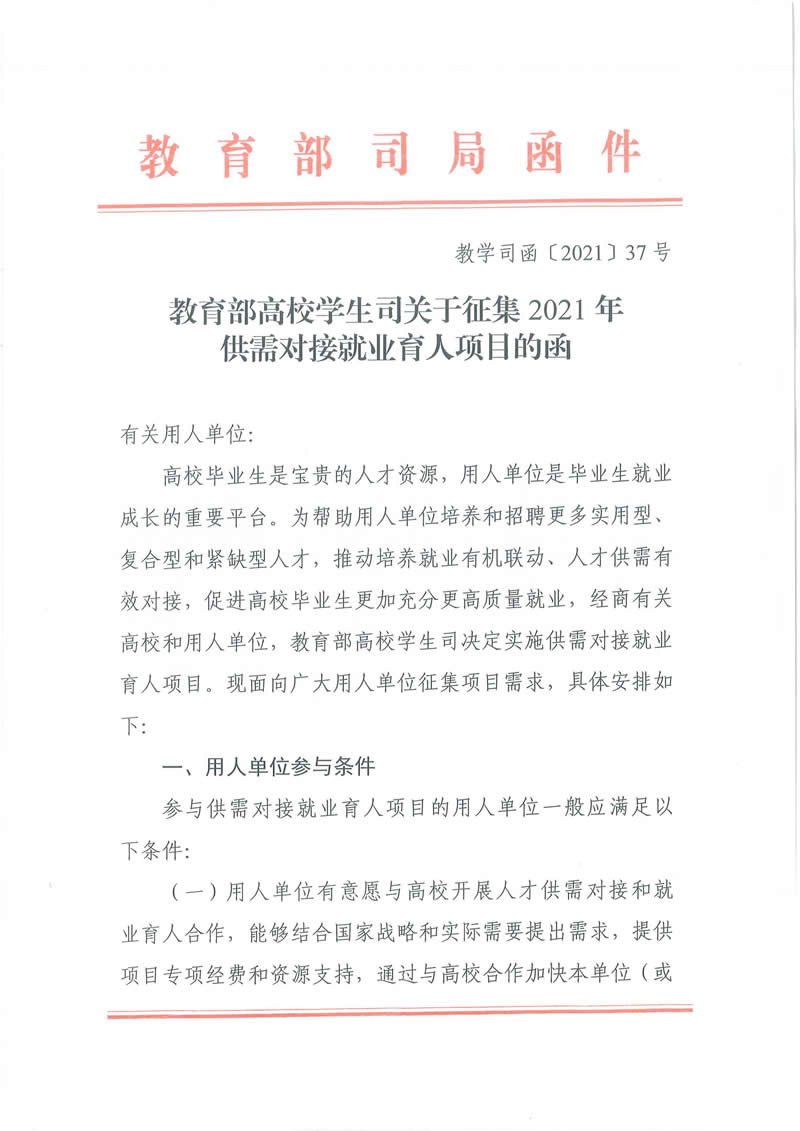教育部高校学生司关于征集2021年供需对接就业育人项目的函